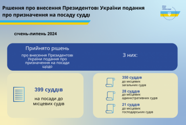 Протягом січня – липня 2024 року ВРП ухвалила внести Президентові України подання про призначення 399 суддів