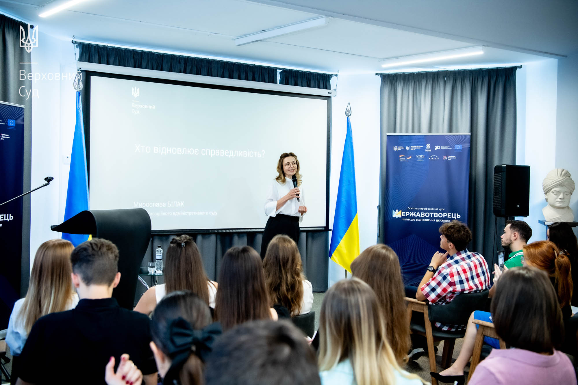 Суддя ВС у Касаційному адміністративному суді Мирослава Білак виступила на освітньо-професійному молодіжному курсі «Державотворець: шлях до відновлення держави», який відбувся на базі Київської школи державного управління імені Сергія Нижного.