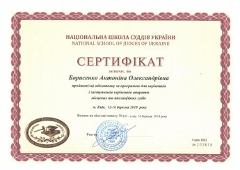Керівник апарату суду Антоніна Борисенко з 12 по 16 березня 2018 року пройшла підготовку керівників і заступників керівників апаратів місцевих та апеляційних судів Вінницької, Житомирської, Київської, Черкаської, Чернігівської областей та міста Києва в Національній школі суддів України  в місті Києві.